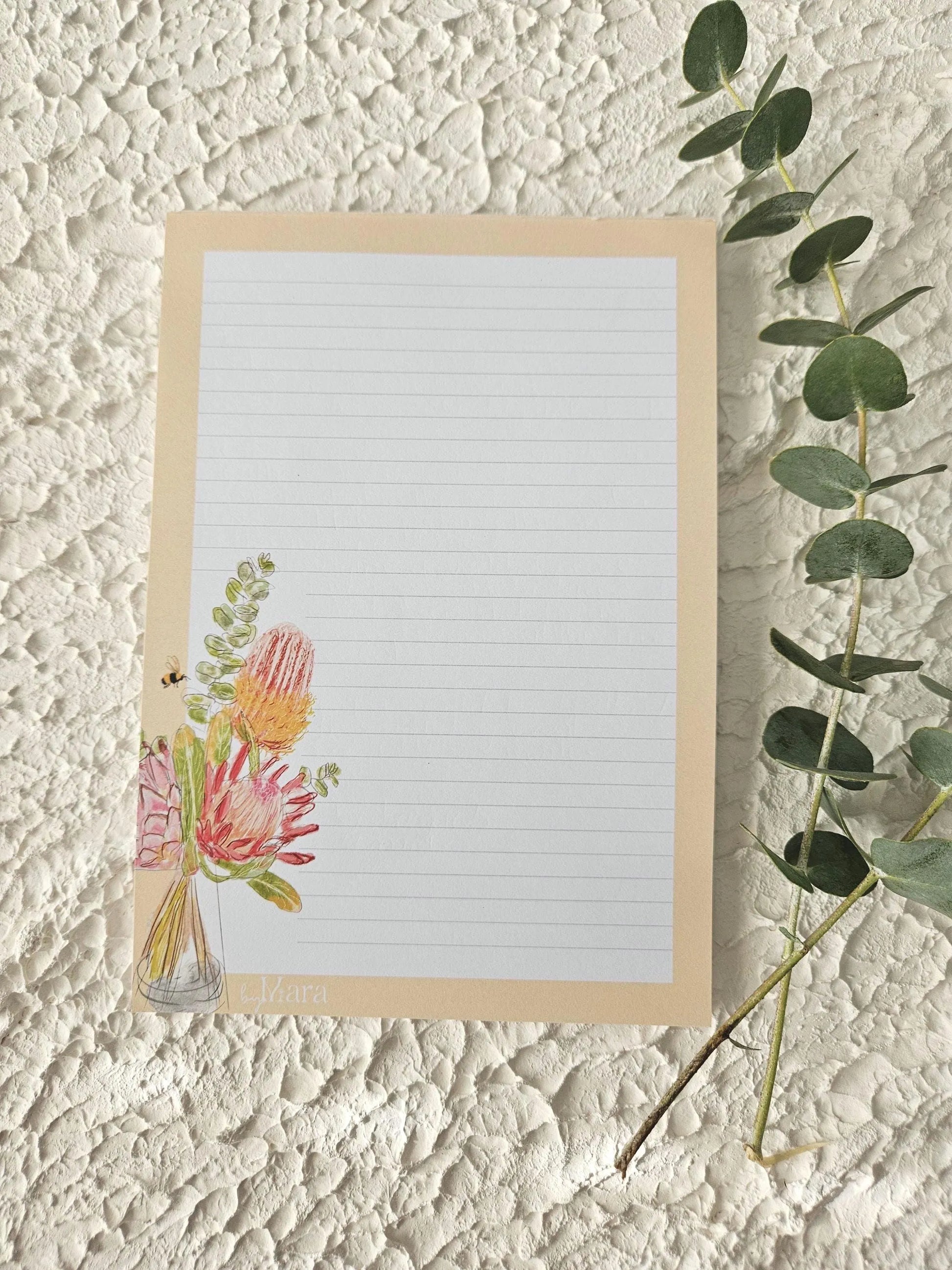 A5 lined notepad featuring a vase of native flowers with a little bee tucked in. It’s one of my favourite designs and a must-have on my desk for everyday notes. A lovely way to say thank you or a sweet little treat for yourself.